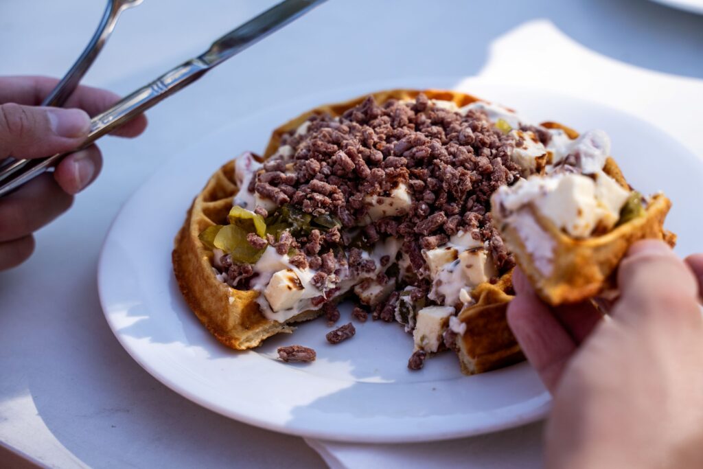 Suolaiset vohvelit 9 € ja makeat 8 €.